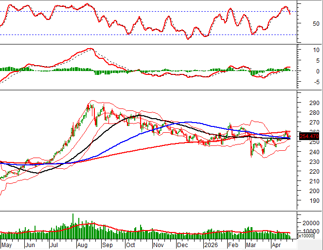 Trong phiên giao dịch sáng ngày 23/04/2026, HNX-Index diễn biến giằng co và đang kiểm tra lại nhóm đường SMA 50 ngày và SMA 100 ngày (tương đương vùng 251-254 điểm).
