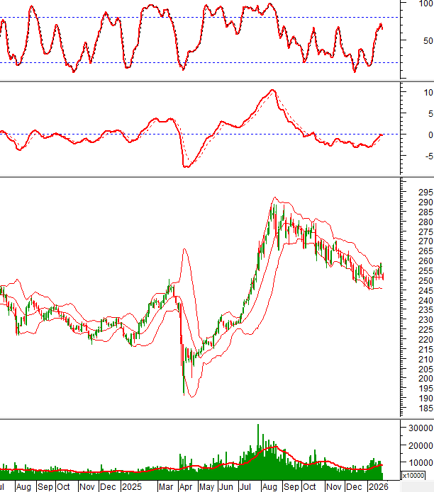 Đáy cũ tháng 01/2026 (tương đương vùng 244-250 điểm) đang được test lại. Kết quả test vùng này sẽ quyết định xu hướng của chỉ số trong thời gian tới.