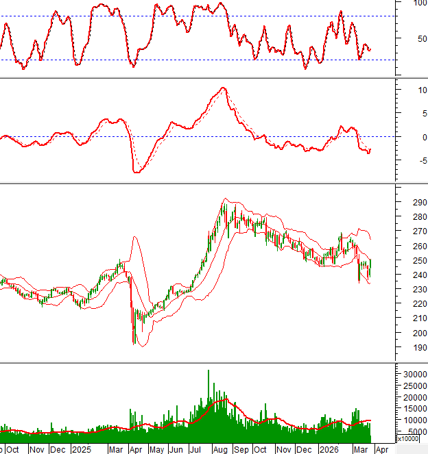 Các chỉ báo Stochastic Oscillator và MACD đồng loạt cho mua trở lại nên tình hình khá tích cực. Mặt khác, chỉ số sẽ tiếp tục nhận được sự hỗ trợ từ đáy cũ 233-240 điểm nếu có điều chỉnh xảy ra.