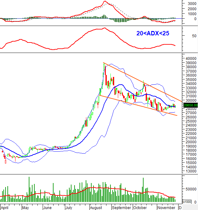 Bên cạnh đó, chỉ báo ADX đang vận động trong vùng xám (20<ADX<25). Điều này cho thấy xu hướng hiện tại của VPB khá yếu và khả năng cao trong các phiên tới diễn biến giằng co vẫn sẽ xuất hiện với các phiên tăng giảm đan xen.
