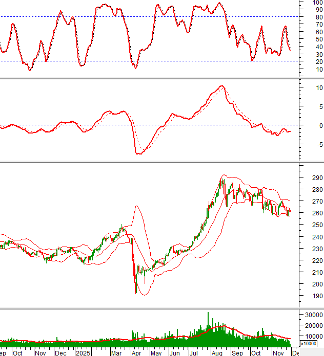 Trong phiên giao dịch sáng ngày 28/11/2025, VN-Index tiếp tục tăng trưởng và sắp chạm vào Upper Band của Bollinger Bands.