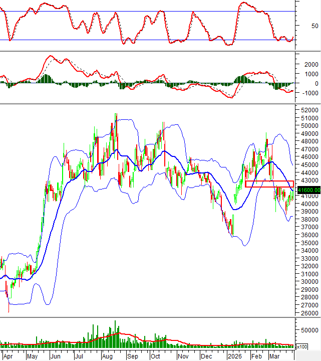 Giá cổ phiếu này đang kiểm tra lại vùng giá 42,000-42,800 (tương đương kháng cự gap down ngắn hạn). Đây sẽ là ngưỡng quyết định xu hướng trong thời gian tới của cổ phiếu này.
