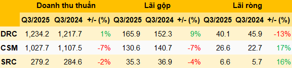 Kết quả kinh doanh nhóm săm lốp trong quý 3/2025