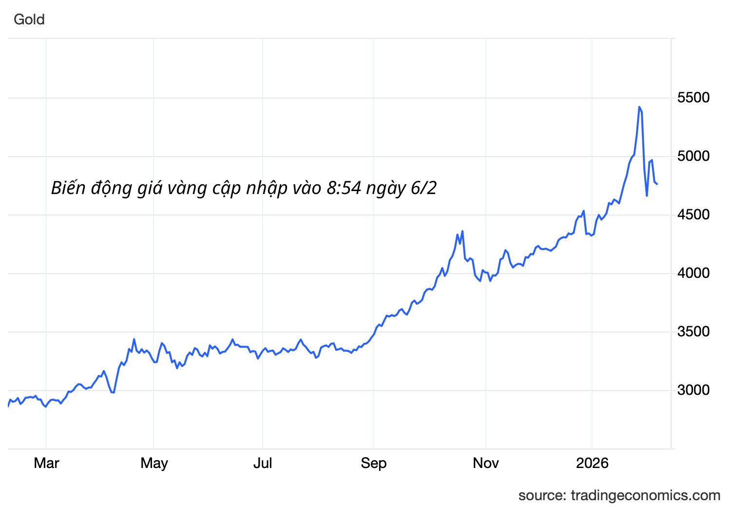 Động thái của SPDR diễn ra trong bối cảnh thị trường kim loại quý đang bước vào pha điều chỉnh. Sau nhịp phục hồi ngắn, giá vàng thế giới đã giảm xuống quanh 4.755 USD/ounce. Đáng chú ý, không lâu trước đó, giá vàng từng lập đỉnh lịch sử tại 5.600 USD/ounce.