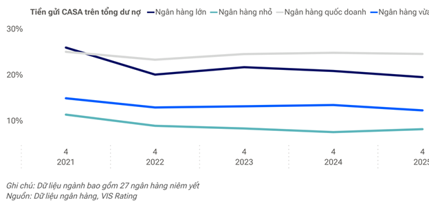 VIS Rating cho biết tỷ lệ CASA toàn ngành đã giảm xuống còn khoảng 19.9% trong năm 2025.