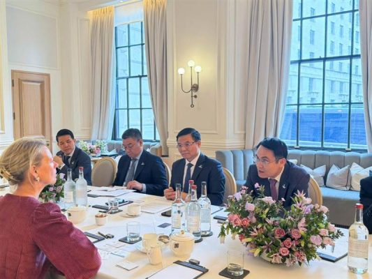Bí thư Thành ủy TP. HCM Trần Lưu Quang và đại diện đến từ KBC, AIC và VietinBank trao đổi về việc hợp tác phát triển hạ tầng số. Ảnh: KBC.