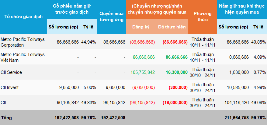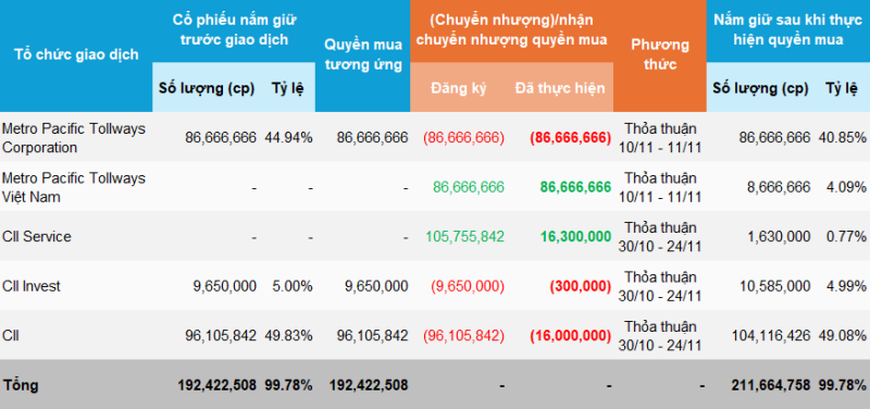 * VPG: CTCP Đầu tư Thương mại Xuất nhập khẩu Việt Pháp (VPG – HOSE) thông qua việc chuyển nhượng toàn bộ hơn 3,34 triệu cổ phần sở hữu, tương ứng tỷ lệ 7,44%/vốn tại CTCP Xây dựng Bất động sản Việt Pháp, với giá 16.200 đồng/cổ phần, tương ứng tổng giá trị hơn 54,2 tỷ đồng.