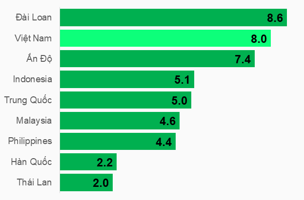 Xét tương quan thành tích các thị trường mới nổi châu Á cho thấy một xu hướng: Thị trường có hiệu quả tốt thường gắn liền với nền kinh tế có tốc độ tăng trưởng cao. Việt Nam vẫn nằm trong nhóm dẫn đầu khu vực về tăng trưởng GDP, qua đó, phần nào lý giải được sức bật cổ phiếu trong bối cảnh bất lợi về dòng vốn nước ngoài.