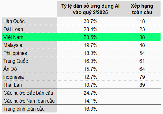 Tỷ lệ phổ cập AI của người Việt tương đối cao