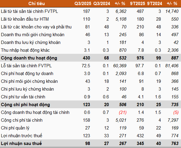 Doanh thu hoạt động tài chính tăng mạnh, đạt hơn 2.2 tỷ đồng, gấp 6.5 lần cùng kỳ, nhờ lãi tiền gửi ngân hàng tăng mạnh. Công ty cho biết các khoản tiền gửi (kỳ hạn 1-6 tháng, lãi suất 4.1%-5%/năm) trong 9 tháng đầu năm đã tăng 159 tỷ đồng (tương đương 498%) so với cùng kỳ. Chi phí tài chính chỉ tăng nhẹ lên 978 triệu đồng.