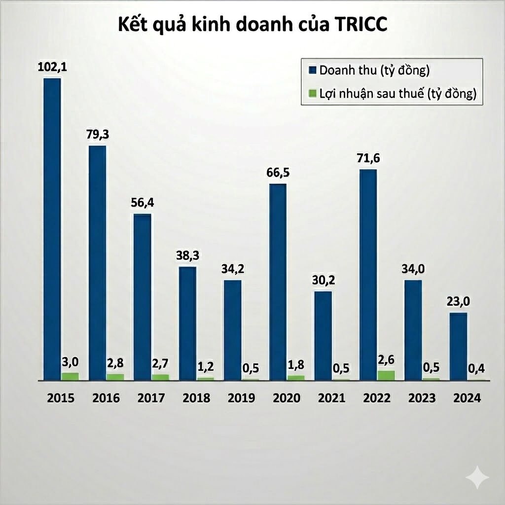 Như vậy, chỉ trong vòng chưa đầy một tháng, giá trị hợp đồng mới của TRICC đã vượt xa quy mô hoạt động trước đây. Giai đoạn 2022–2024, doanh thu bình quân của doanh nghiệp chỉ đạt khoảng 42,8 tỷ đồng mỗi năm, trong khi lợi nhuận trước thuế ở mức khiêm tốn 1,1 tỷ đồng. Thậm chí, nửa đầu năm 2025, doanh nghiệp còn ghi nhận doanh thu chỉ 3,2 tỷ đồng và lỗ nhẹ.