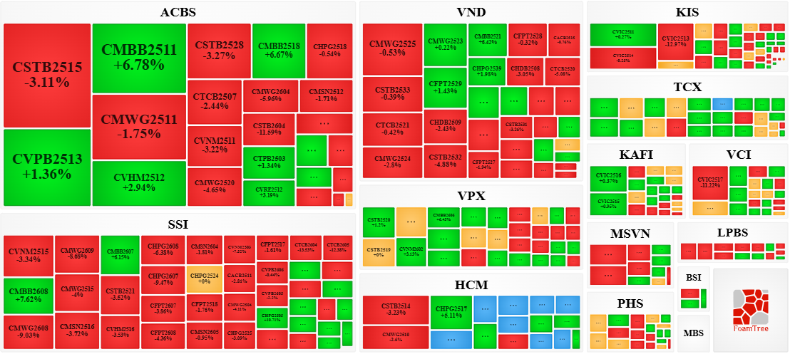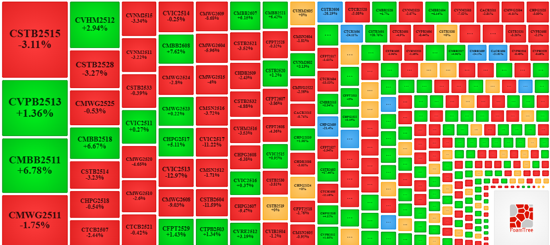 Trong phiên giao dịch ngày 03/02/2026, thị trường diễn biến phân hóa nhưng bên bán có phần lấn lướt hơn khiến phần lớn các mã chứng quyền giảm giá. Cụ thể, các mã chứng quyền lớn trong nhóm giảm giá là CSTB2515, CMWG2511, CHPG2518 và CTCB2507.