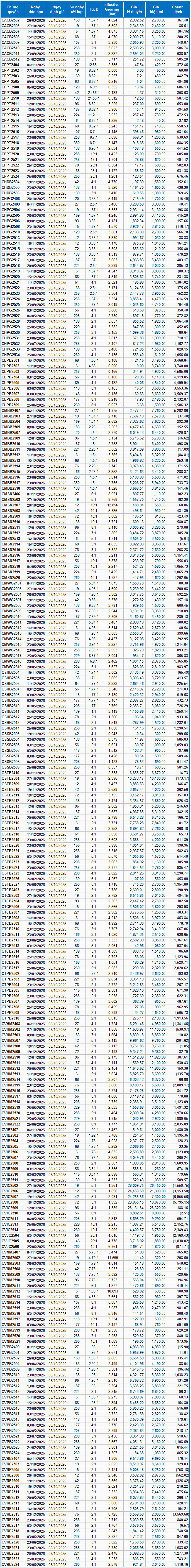 Dựa trên phương pháp định giá phù hợp với thời điểm khởi đầu là ngày 08/10/2025, mức giá hợp lý của các chứng quyền đang được giao dịch trên thị trường được thể hiện như sau: