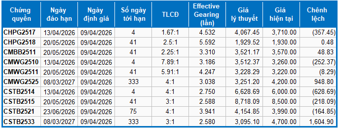 Thị trường chứng quyền ngày 09/04/2026: Khởi sắc cùng thị trường cơ sở