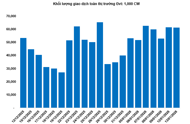 Thị trường chứng quyền ngày 14/01/2026: Thị trường diễn biến phân hóa