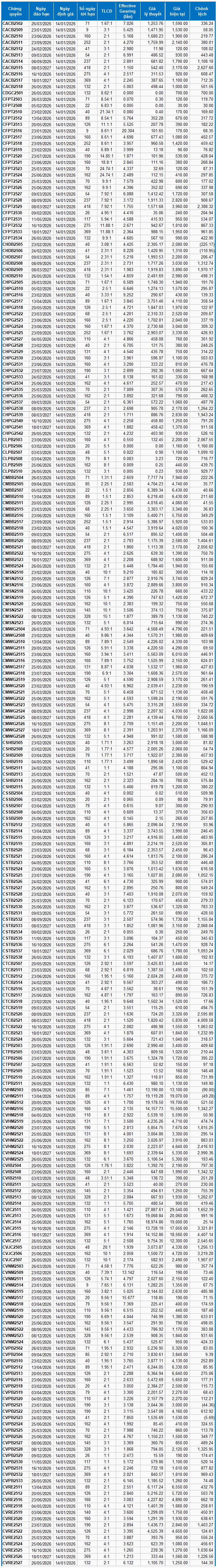 Dựa trên phương pháp định giá phù hợp với thời điểm khởi đầu là ngày 14/01/2026, mức giá hợp lý của các chứng quyền đang được giao dịch trên thị trường được thể hiện như sau: