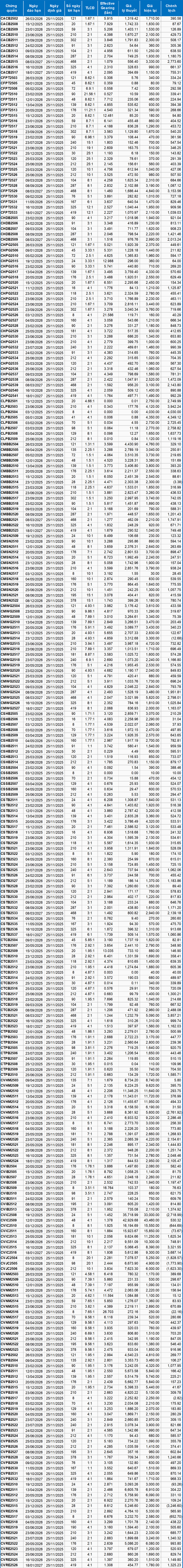 Dựa trên phương pháp định giá phù hợp với thời điểm khởi đầu là ngày 25/11/2025, mức giá hợp lý của các chứng quyền đang được giao dịch trên thị trường được thể hiện như sau: