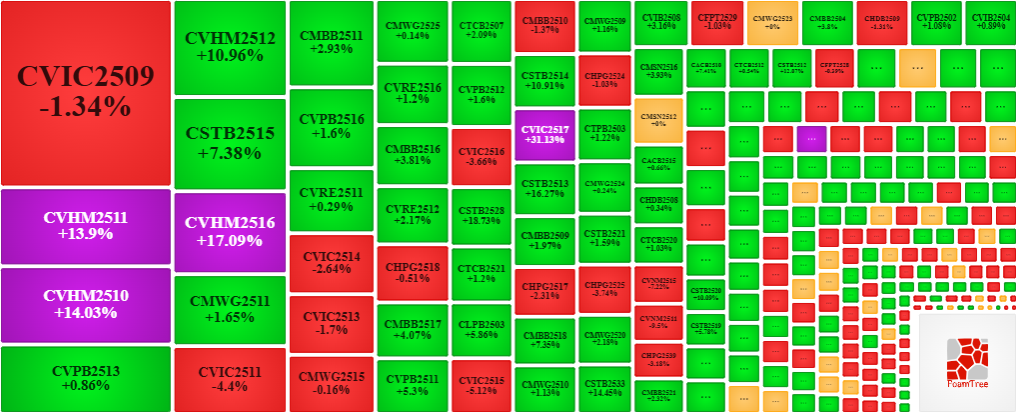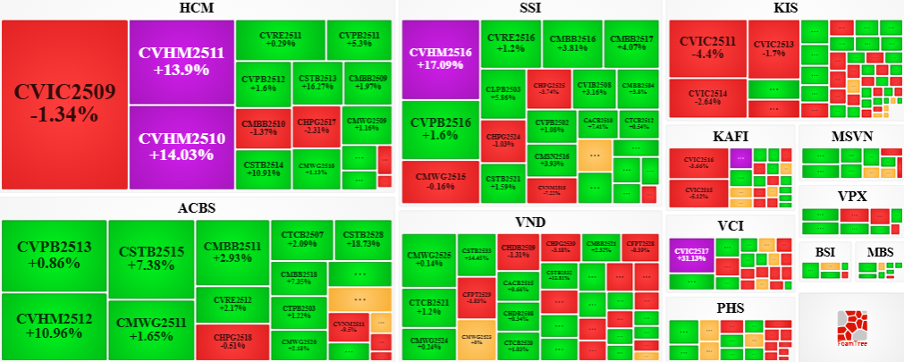 Trong phiên giao dịch ngày 24/12/2025, mặc dù thị trường diễn biến phân hóa nhưng bên mua vẫn có phần lấn lướt hơn khiến phần lớn các mã chứng quyền tăng giá. Cụ thể, các mã chứng quyền lớn trong nhóm tăng giá là CVHM2511, CVPB2513, CSTB2515 và CMWG2511.