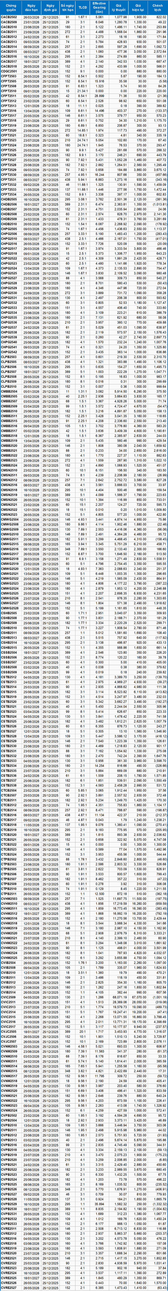 Dựa trên phương pháp định giá phù hợp với thời điểm khởi đầu là ngày 25/12/2025, mức giá hợp lý của các chứng quyền đang được giao dịch trên thị trường được thể hiện như sau: