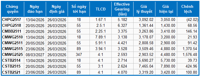 Thị trường chứng quyền ngày 26/03/2026: Tâm lý nhà đầu tư đang được cải thiện