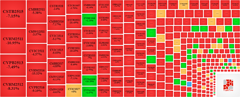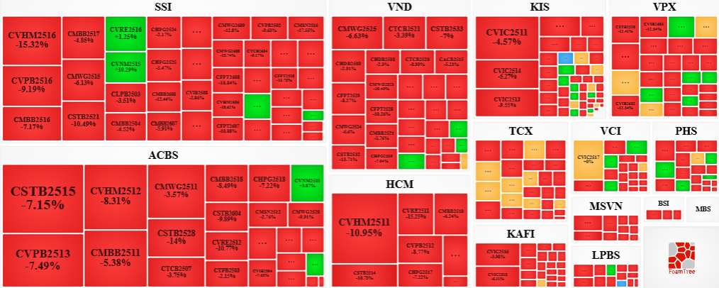 Trong phiên giao dịch ngày 26/01/2026, bên bán tiếp tục áp đảo thị trường khiến phần lớn các mã chứng quyền giảm giá. Cụ thể, các mã chứng quyền lớn trong nhóm giảm giá là CSTB2515, CVHM2511, CVPB2513 và CMBB2511.