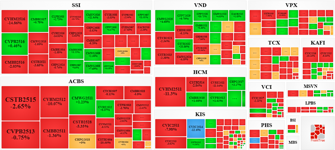 Trong phiên giao dịch ngày 27/01/2026, bên bán tiếp tục áp đảo thị trường khiến phần lớn các mã chứng quyền giảm giá. Cụ thể, các mã chứng quyền lớn trong nhóm giảm giá là CSTB2515, CVHM2511, CVPB2513 và CMBB2511.