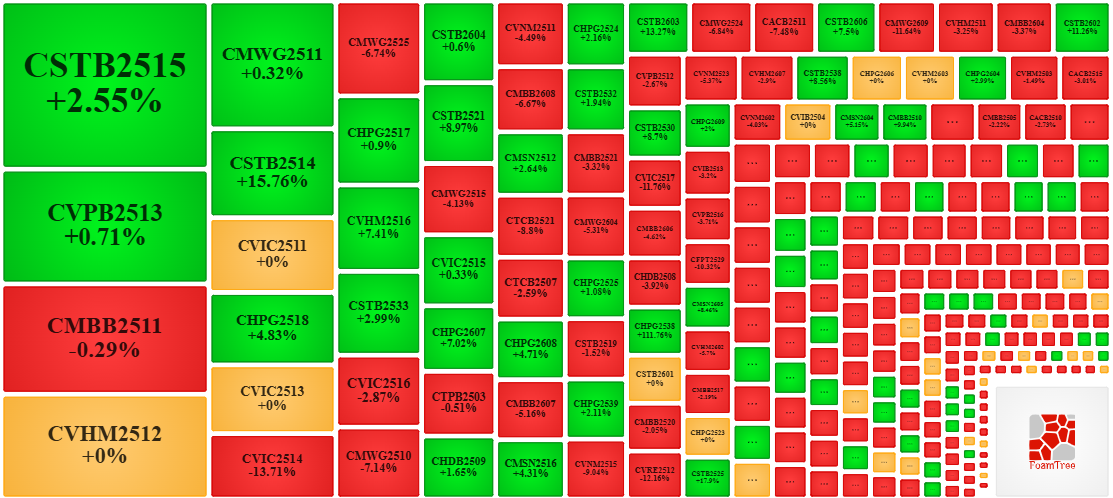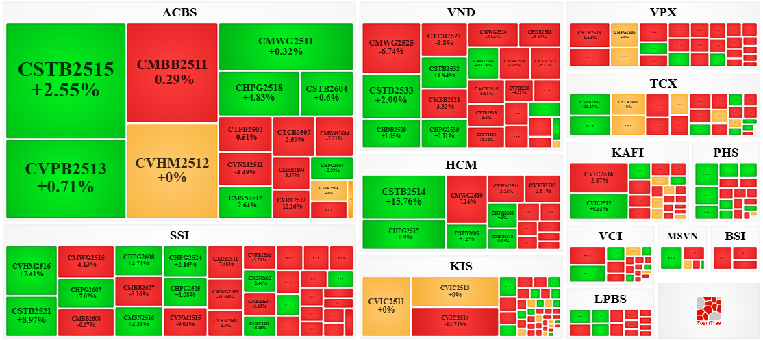 Trong phiên giao dịch ngày 30/03/2026, tuy thị trường diễn biến phân hóa nhưng bên bán tiếp tục dẫn dắt thị trường khiến phần lớn các mã chứng quyền giảm giá. Cụ thể, các mã chứng quyền lớn trong nhóm giảm giá là CMBB2511, CVIC2514, CMWG2525 và CVIC2516.