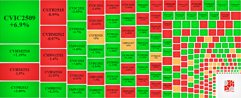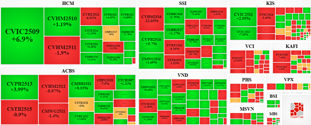 Trong phiên giao dịch ngày 30/12/2025, thị trường diễn biến phân hóa nhưng bên mua vẫn có phần lấn lướt hơn khiến phần lớn các mã chứng quyền tăng giá. Cụ thể, các mã chứng quyền lớn trong nhóm tăng giá là CVIC2509, CVHM2510, CVPB2513 và CMWG2511.