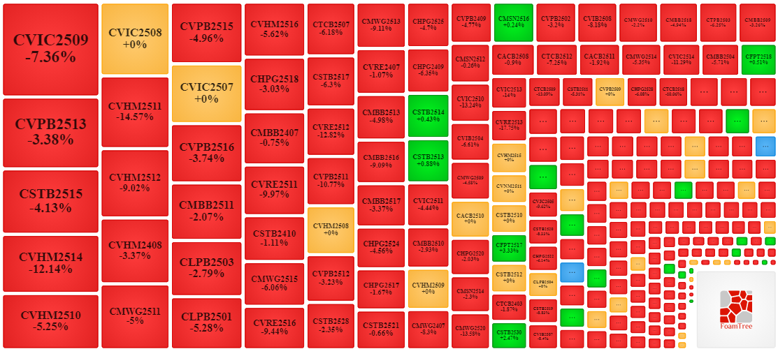 Trong phiên giao dịch ngày 31/10/2025, bên bán tiếp tục dẫn dắt thị trường khiến phần lớn các mã chứng quyền giảm giá. Cụ thể, các mã chứng quyền lớn trong nhóm giảm giá là CVIC2509, CVPB2513, CSTB2515, CVHM2514 và CVHM2510.
