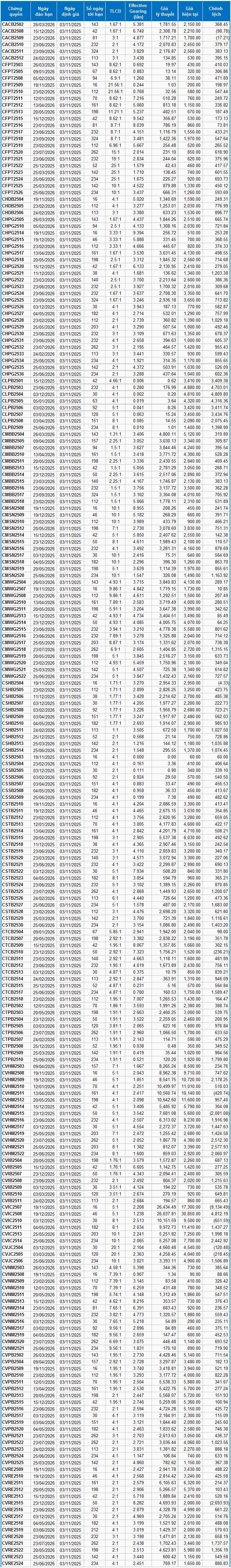 Dựa trên phương pháp định giá phù hợp với thời điểm khởi đầu là ngày 03/11/2025, mức giá hợp lý của các chứng quyền đang được giao dịch trên thị trường được thể hiện như sau: