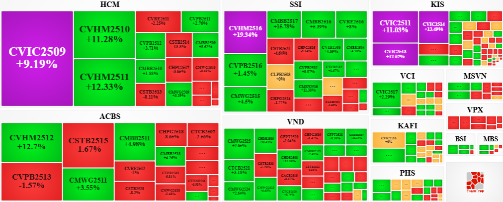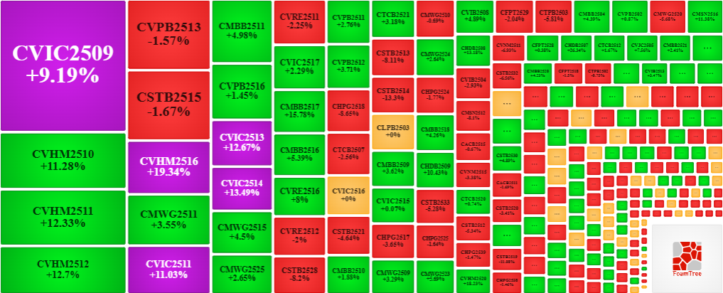 Trong phiên giao dịch ngày 31/12/2025, thị trường diễn biến phân hóa nhưng bên bán vẫn có phần lấn lướt hơn khiến phần lớn các mã chứng quyền giảm giá. Cụ thể, các mã chứng quyền lớn trong nhóm giảm giá là CVIC2509, CVHM2510, CMWG2511 và CMBB2511.