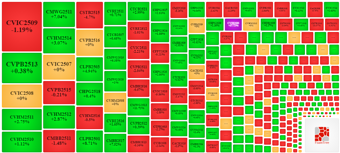Trong phiên giao dịch ngày 14/11/2025, thị trường diễn biến phân hóa mạnh nhưng bên bán vẫn tiếp tục dẫn dắt thị trường khiến phần lớn các mã chứng quyền giảm giá. Cụ thể, các mã chứng quyền lớn trong nhóm giảm giá là CVIC2509, CVPB2515, CMBB2511 và CSTB2515.