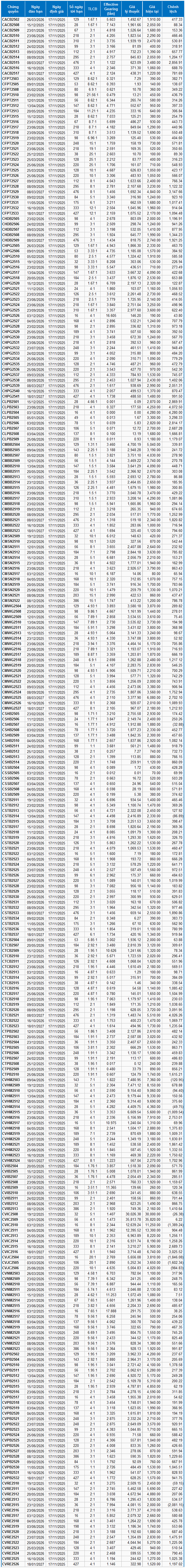 Dựa trên phương pháp định giá phù hợp với thời điểm khởi đầu là ngày 17/11/2025, mức giá hợp lý của các chứng quyền đang được giao dịch trên thị trường được thể hiện như sau: