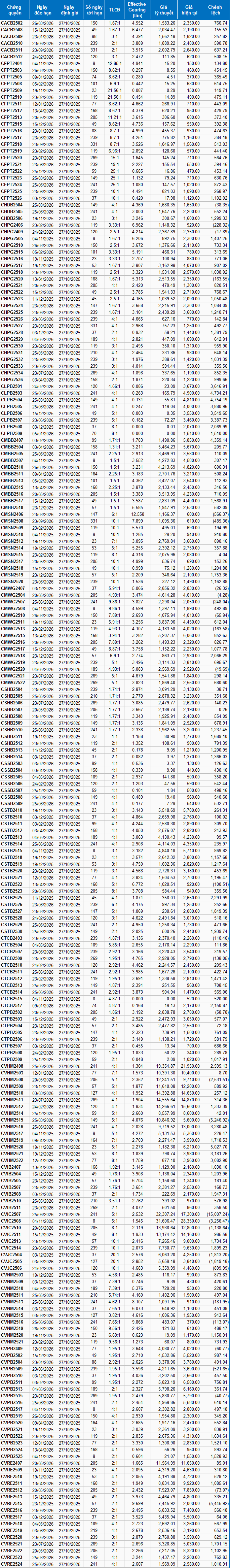 Dựa trên phương pháp định giá phù hợp với thời điểm khởi đầu là ngày 27/10/2025, mức giá hợp lý của các chứng quyền đang được giao dịch trên thị trường được thể hiện như sau: