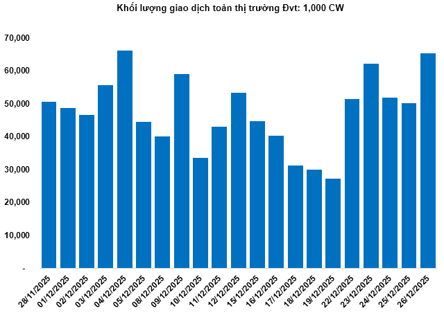 Thị trường chứng quyền tuần 29-31/12/2025: Khối lượng giao dịch toàn thị trường tăng hơn 30%
