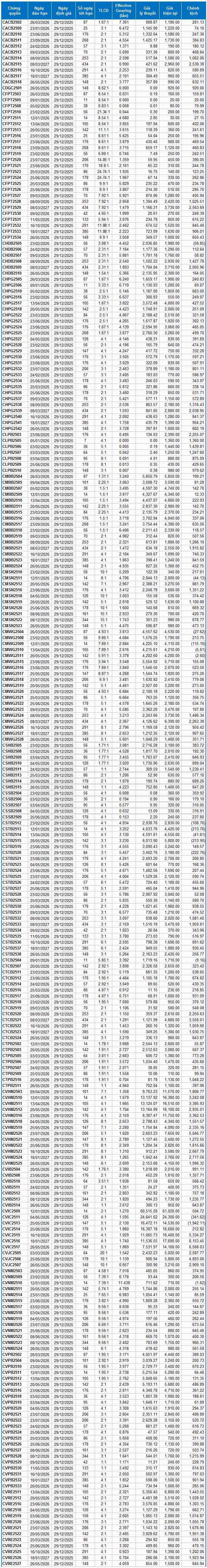 Khối lượng giao dịch toàn thị trường trong phiên 26/12 đạt 65.24 triệu CW, tăng 30.26%; giá trị giao dịch đạt 132.24 tỷ đồng, tăng 11.03% so với phiên 25/12. Trong đó, CMBB2518 là mã dẫn đầu thị trường về khối lượng và giá trị giao dịch, với tổng khối lượng đạt 3.05 triệu CW, tương đương giá trị 7.02 tỷ đồng.