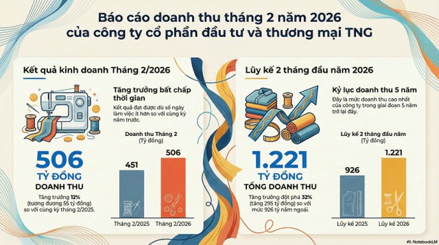 Báo cáo cũng cho thấy sự chênh lệch rõ ràng giữa hai mốc so sánh. Nếu tháng 2/2025 đạt 451 tỷ đồng thì sau một năm, mốc doanh thu đã vượt ngưỡng 500 tỷ đồng. Việc thiết lập mức 506 tỷ đồng trong tháng 2 năm nay đặt nền doanh thu đầu năm ở mặt bằng cao hơn so với cùng kỳ, tạo khác biệt ngay từ giai đoạn đầu của chu kỳ tài chính.