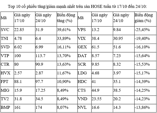 Trên sàn HOSE, cổ phiếu SVC vượt trội khi tăng gần 40% sau khi đã có nhịp tăng hơn 11% trong tuần trước đó. Tuy nhiên, thanh khoản của cổ phiếu này chỉ dừng lại ở mức thấp, trung bình chỉ vài chục nghìn đơn vị/phiên.