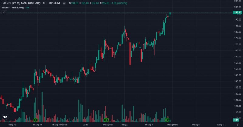 Trên thị trường chứng khoán, sau giai đoạn tích lũy quanh vùng 150.000 đồng/cổ phiếu vào đầu năm 2026, cổ phiếu TOS bước vào xu hướng tăng và liên tục thiết lập các đỉnh lịch sử mới. Tính đến phiên ngày 29/4, mã này giao dịch ở mức 195.800 đồng/cổ phiếu, tăng 30% so với đầu năm.
