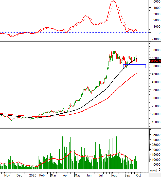 Đáy cũ tháng 09/2025 (tương đương vùng 48,500-50,500) sẽ đóng vai trò hỗ trợ trong các phiên tới.
