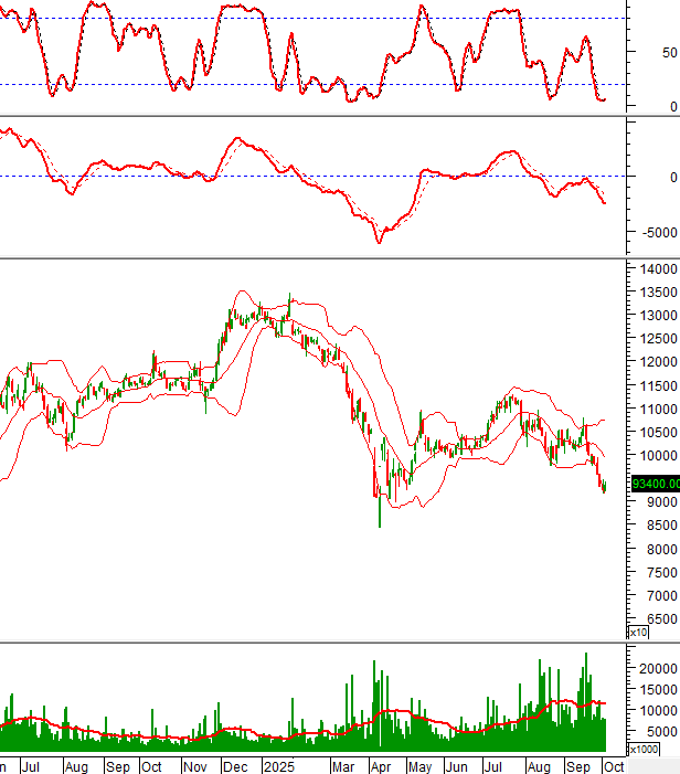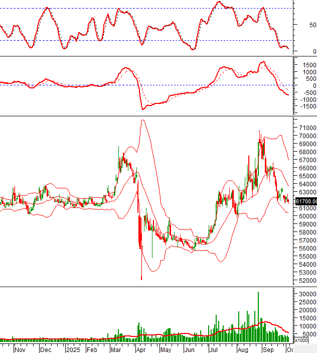 Chỉ báo MACD lao dốc và đã cho tín hiệu bán trở lại. Nếu chỉ báo này rơi xuống dưới ngưỡng 0 trong các phiên tới thì rủi ro sẽ càng lớn.