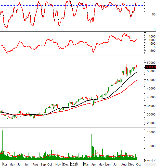 Trong phiên giao dịch ngày 03/10/2025, giá cổ phiếu VCB tiếp tục giằng co mạnh với khối lượng thấp.