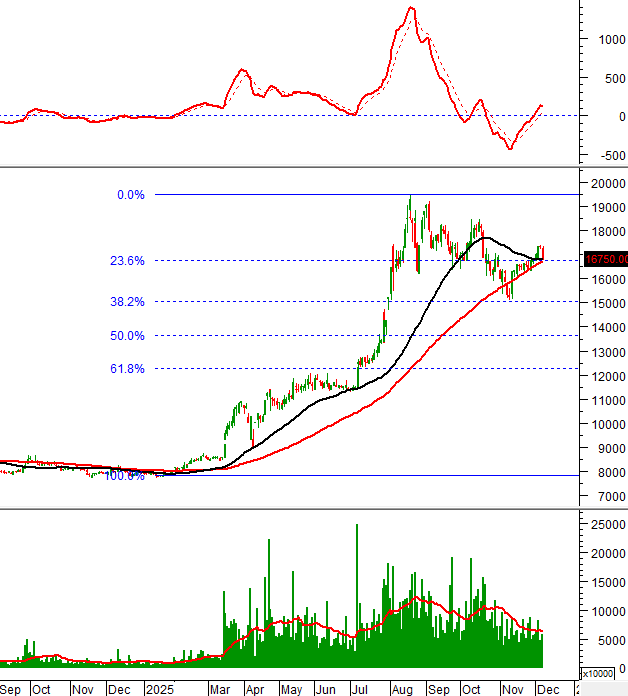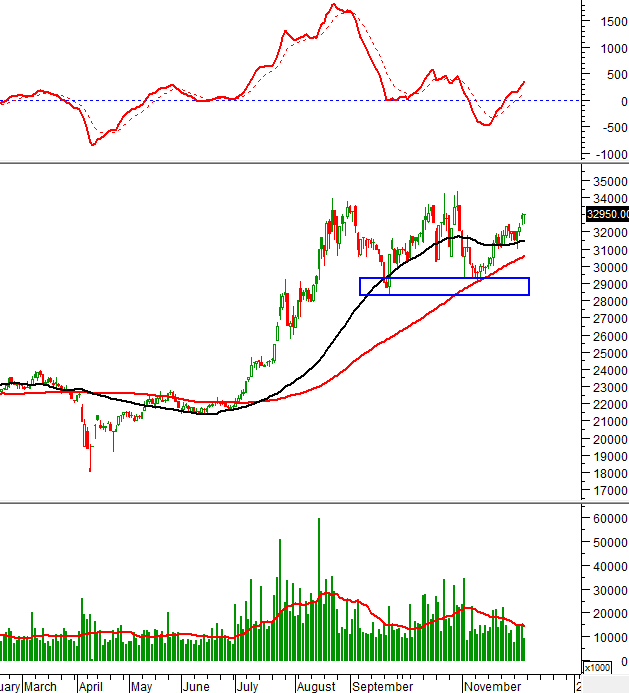 Chỉ báo MACD tiếp tục đi lên và phân kỳ giá lên (bullish divergence) xuất hiện nên triển vọng ngắn hạn tích cực.
