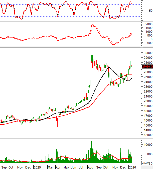 Đỉnh cũ tháng 08/2025 (tương đương vùng 28,000-29,500) đang là kháng cự chính trong ngắn hạn.
