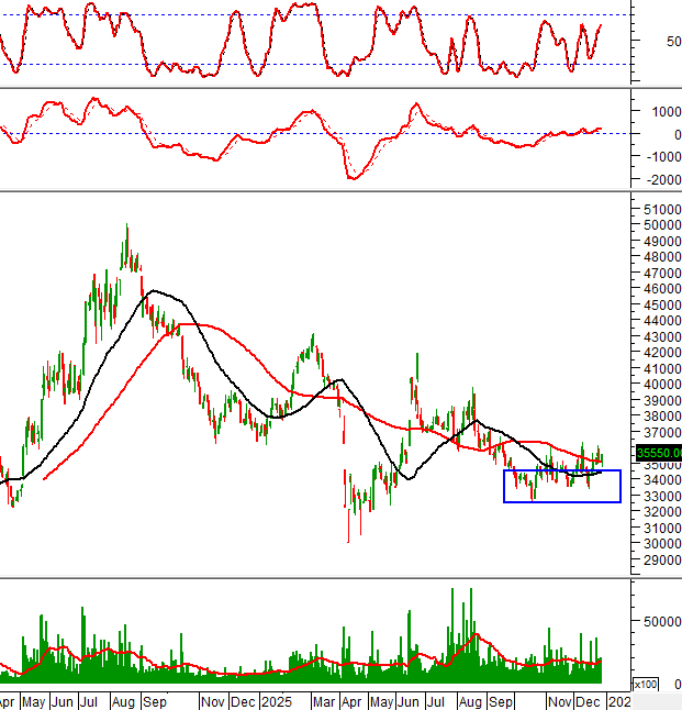 Đáy cũ tháng 10/2025 (tương đương vùng 32,500-34,500) đã hỗ trợ rất hiệu quả trong đợt điều chỉnh vừa qua.