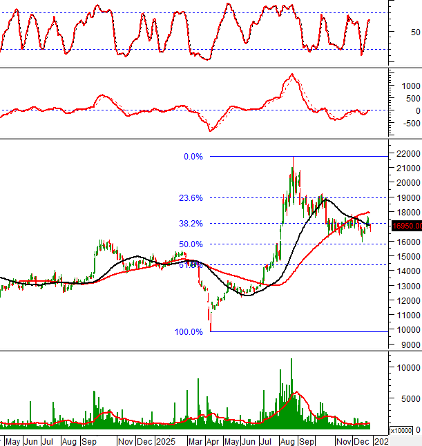 Khối lượng giao dịch nằm trên mức trung bình 20 ngày cho thấy nhà đầu tư không quá thận trọng khi giá đang test lại đáy cũ tháng 07/2020 (tương đương vùng 12,500-14,500). Việc mua vào trong vùng này được ủng hộ mạnh mẽ.