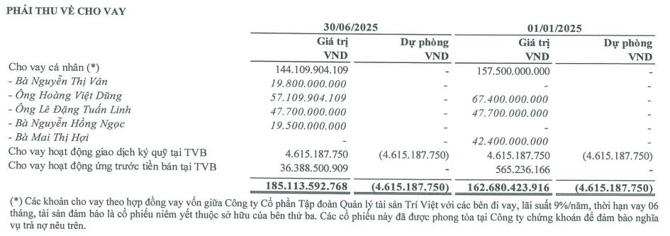 Thuyết minh các khoản cho vay và phải thu ngắn hạn của TVC