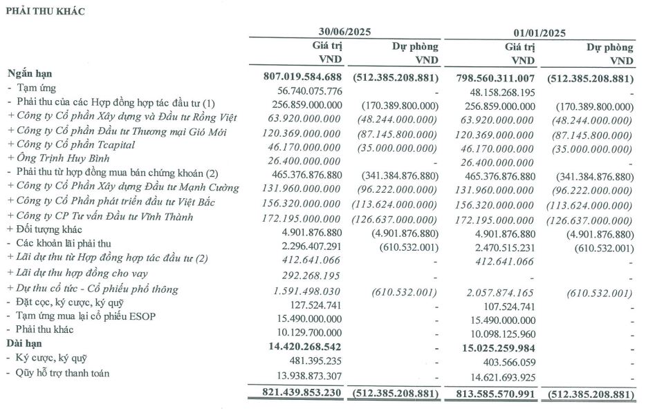Đáng chú ý, khoản phải thu cho vay dài hạn (185 tỷ đồng) và phải thu ngắn hạn khác (807 tỷ đồng) chiếm tỷ trọng lớn trong cơ cấu tài sản của Công ty. Trong đó, Công ty phải dự phòng hơn 512 tỷ đồng với khoản phải thu ngắn hạn khó đòi.