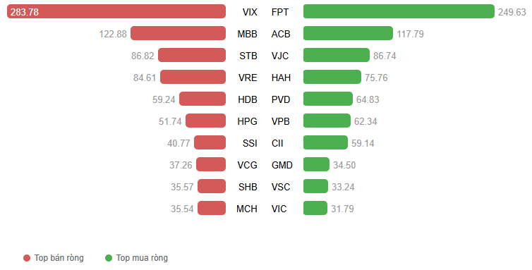Giá trị giao dịch ròng theo mã cổ phiếu. Đvt: Tỷ đồng