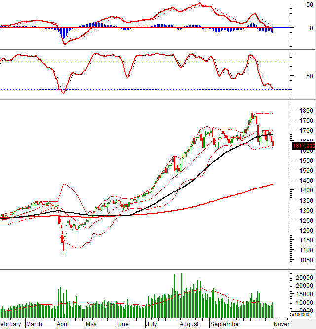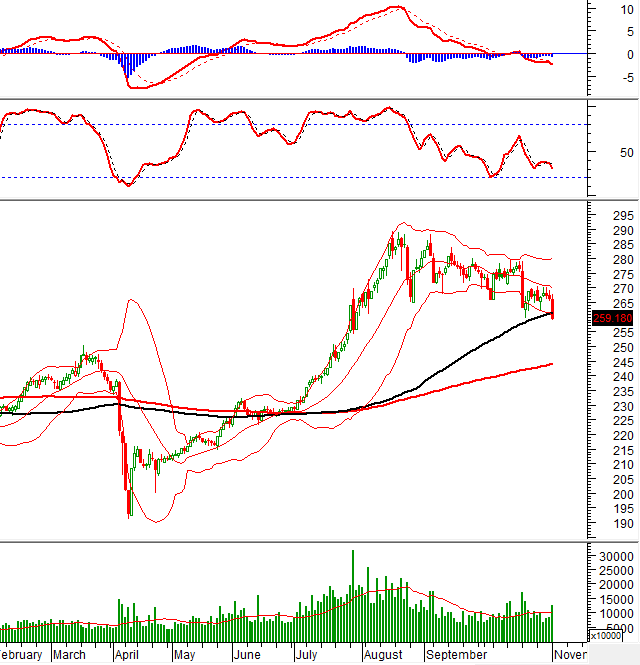 Các chỉ báo Stochastic Oscillator và MACD tiếp tục đi xuống nên rủi ro điều chỉnh nhiều khả năng sẽ còn tiếp diễn trong ngắn hạn.